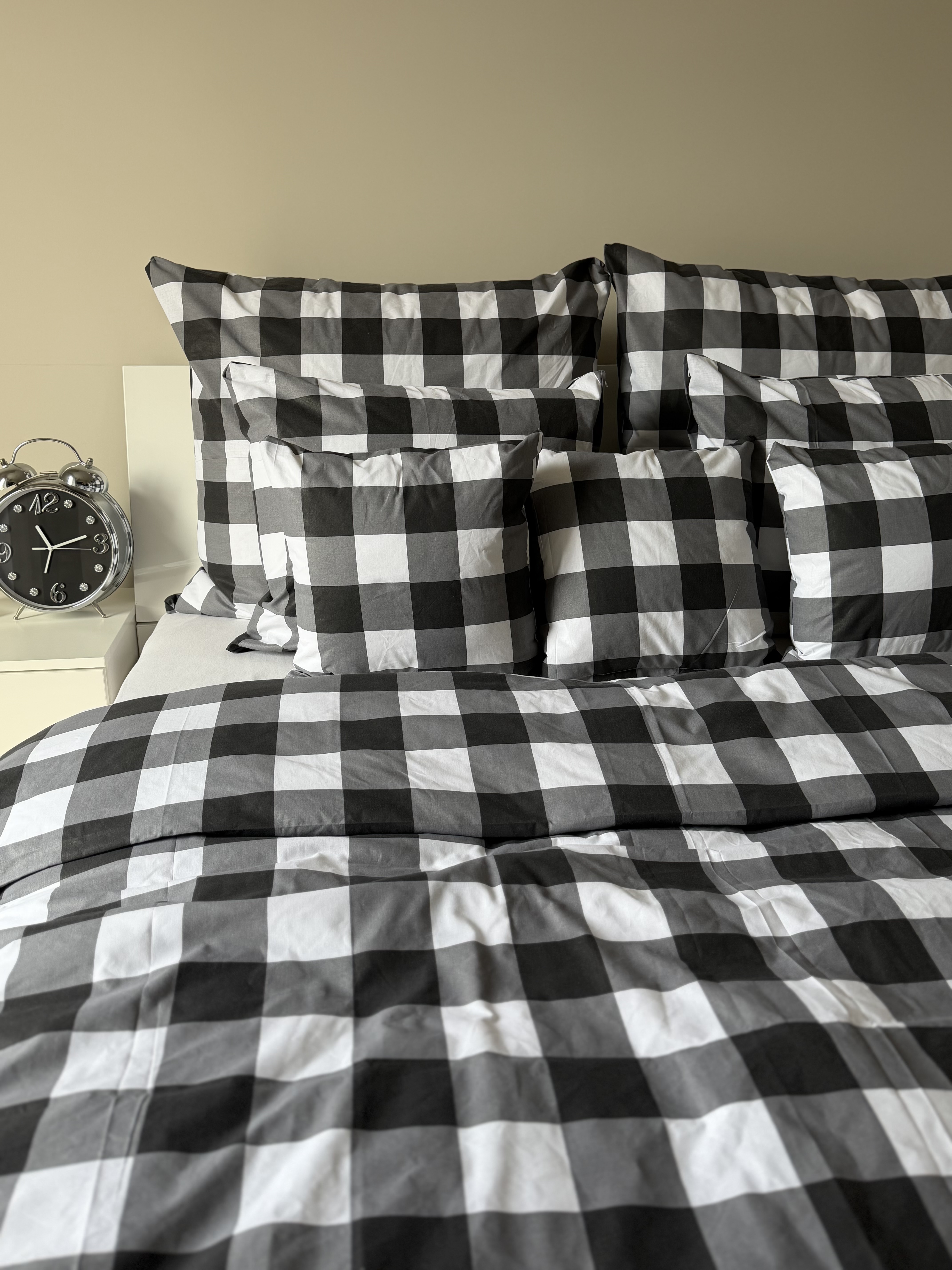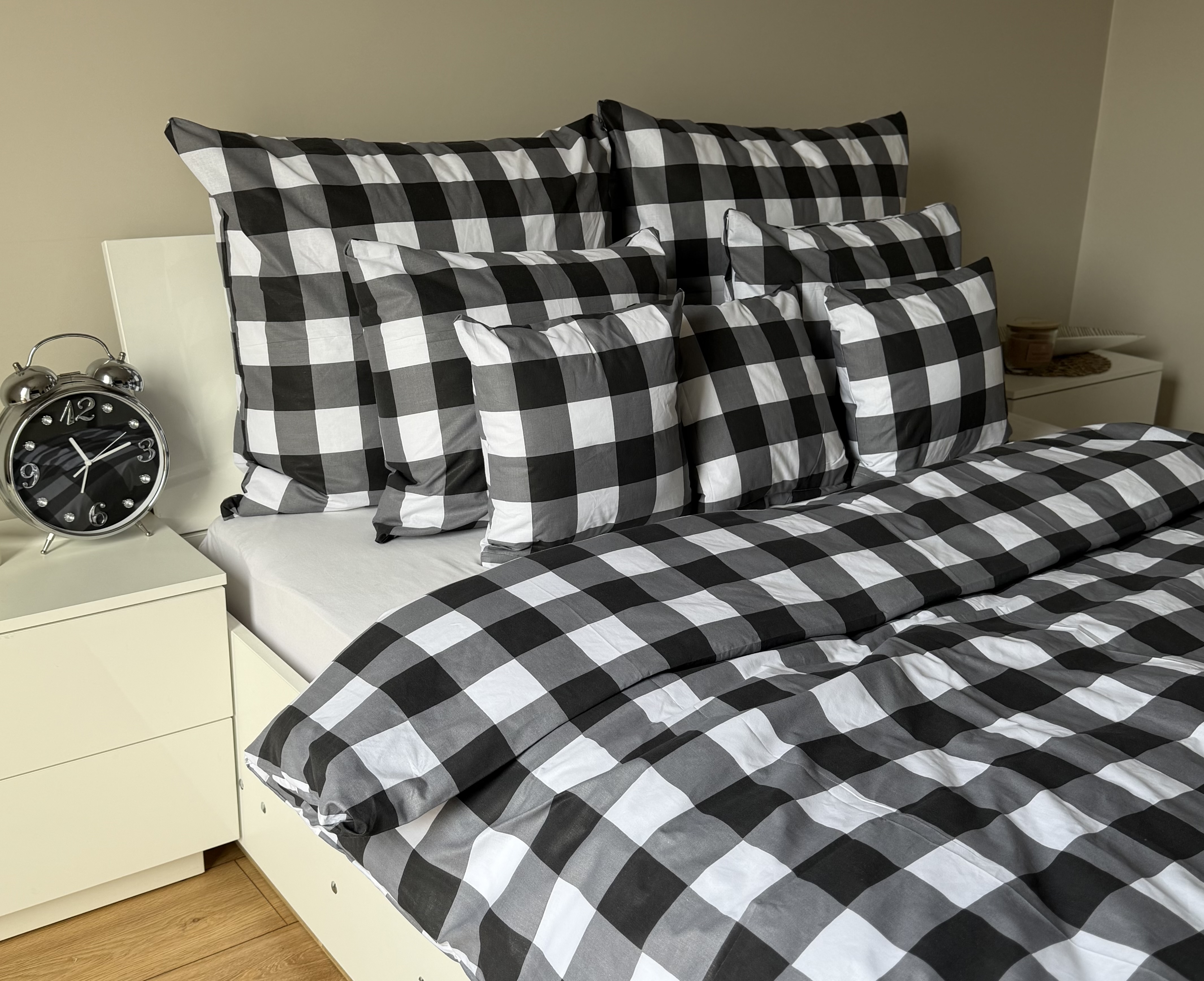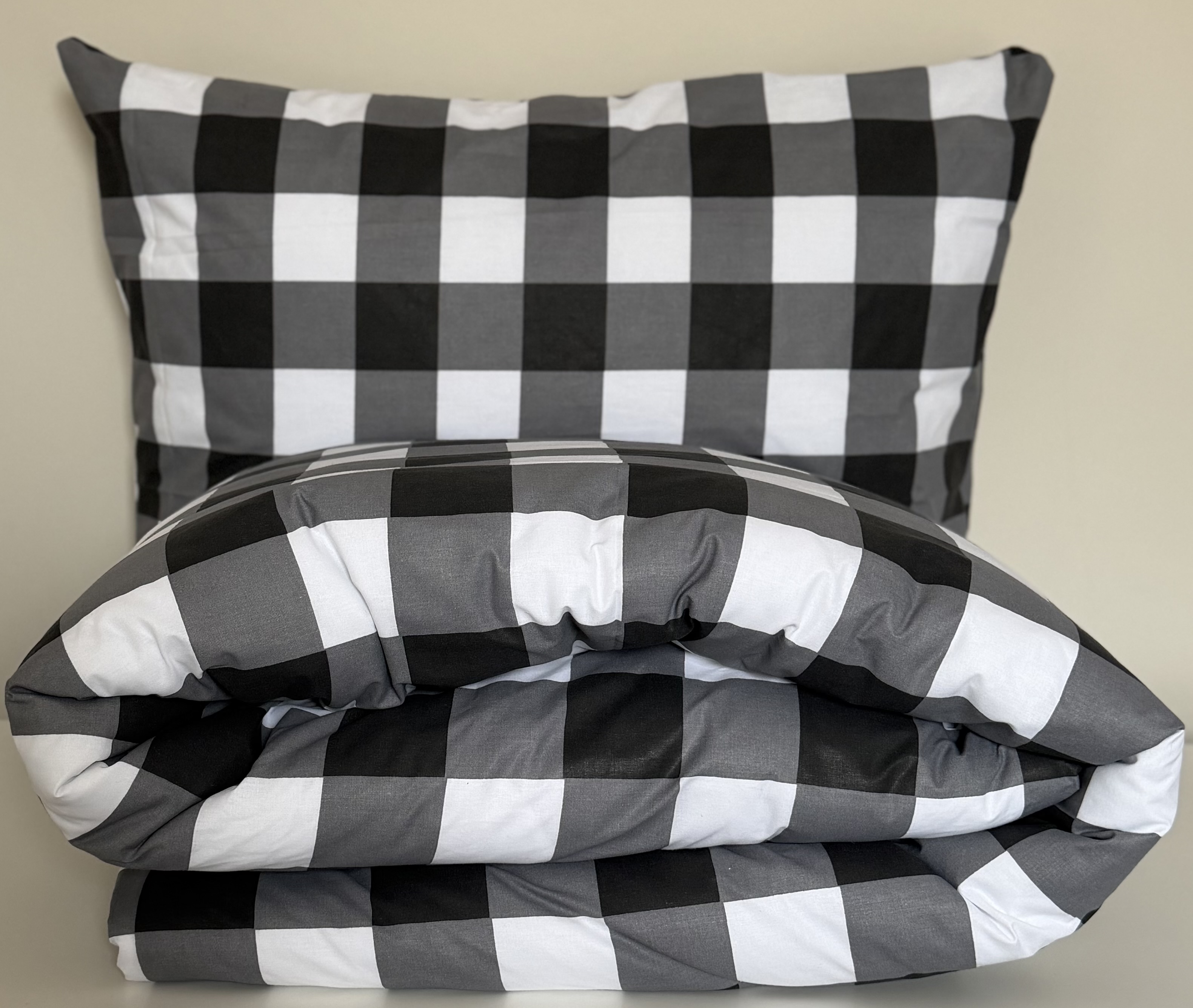 Pościel Bawełniana Anmar 220x200 - Antracytowo-Czarno-Biała Krateczka