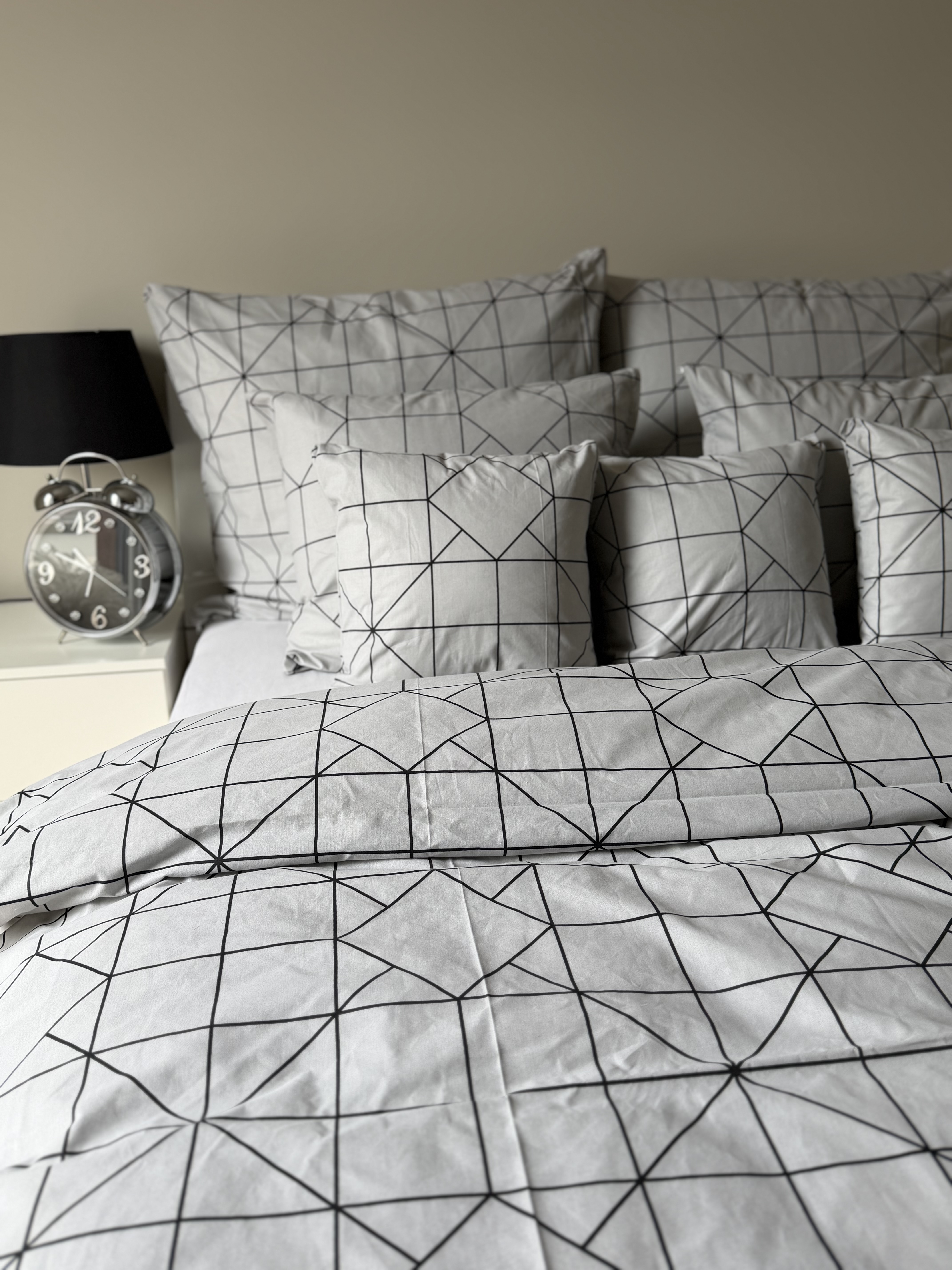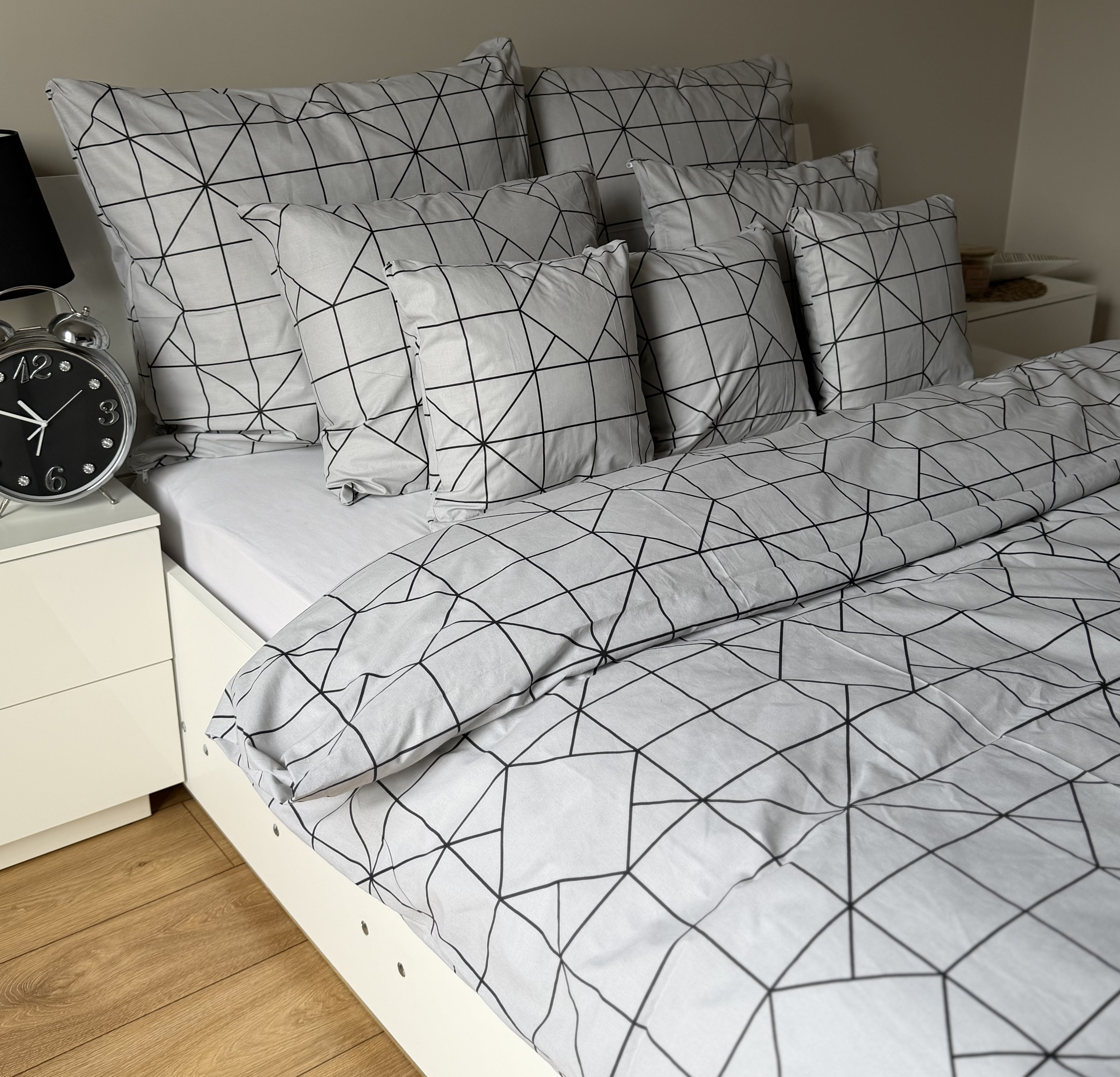 Pościel Bawełniana Anmar 220x200 - Popielata Symetria